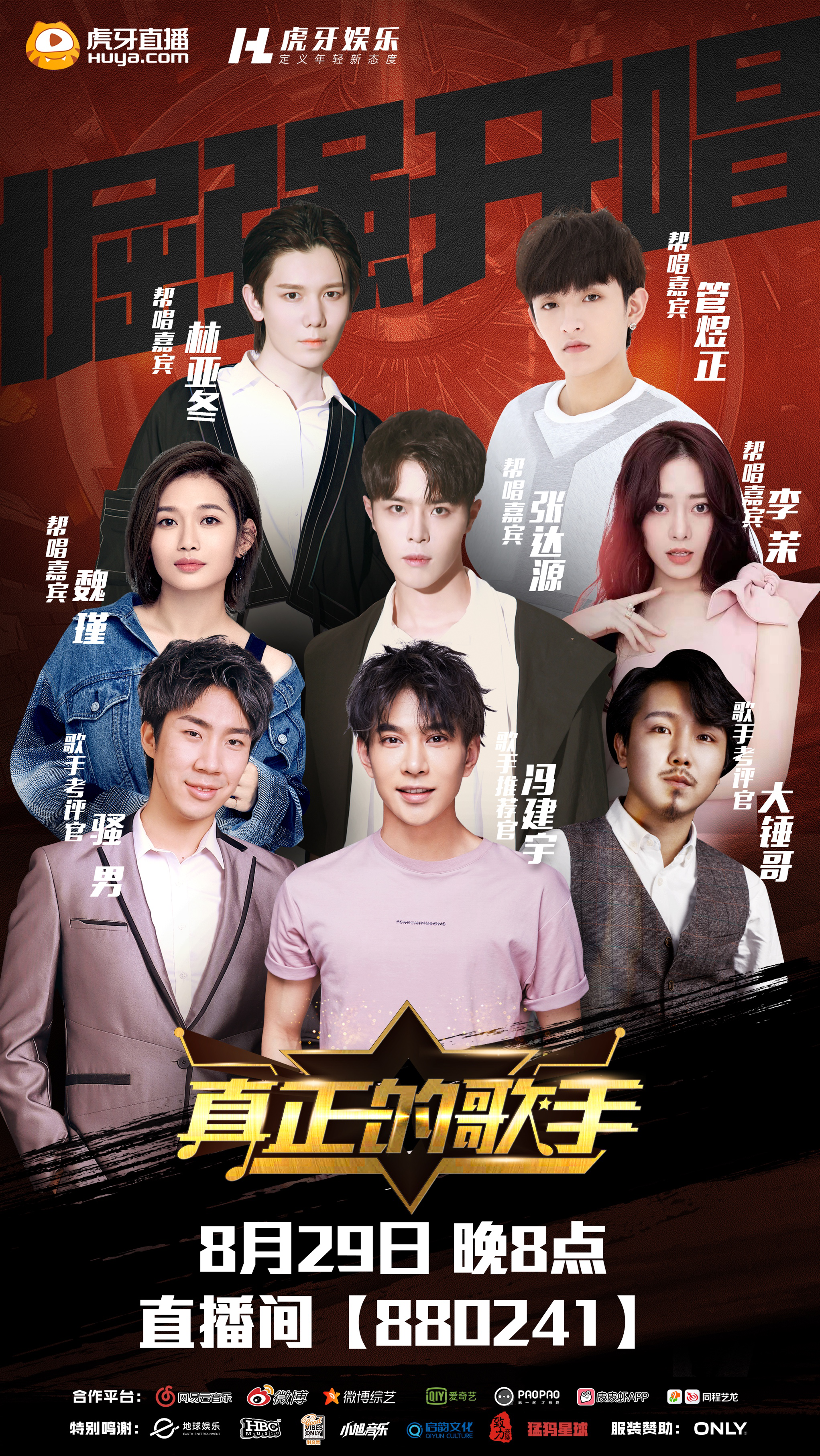 8月29日晚上8点,虎牙娱乐音乐厂牌live表演秀《真正的歌手》首次在线下进行直播开唱!人气小生冯建宇以一首《海芋恋》闪耀开场,酷炫slay全场!虎牙游戏主播骚男、大锤哥现身担任评审官,独特幽默的点评风格,逗乐全场。歌手魏瑾、李茉、林亚冬、张达源、管煜正倾情助唱,虎牙主播蕾宝、初一发挥硬核实力,倔强开唱为大家带了一场精妙绝伦的Live表演秀!