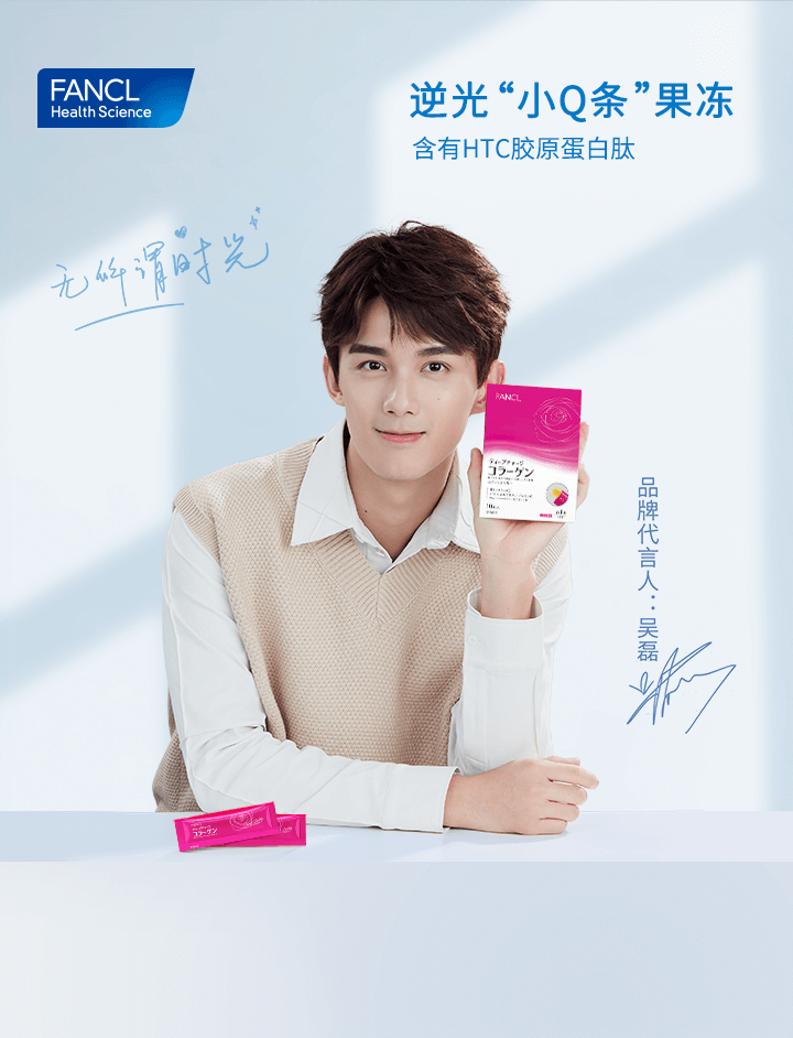 FANCL HealthScience本次新品上市,势必将在“小吃货”圈中刮起一阵健康风——它酸酸的口感会让人食欲大开、欲罢不能,而早亮白、晚恢复的功效,也可以充分满足爱美青年的的日常需求,相信吴磊本次代言也是出于对于品牌及产品深刻的青睐与信任。广大精致男孩女孩们,赶快和吴磊一起,用“小Q条”变身发光少男少女吧!